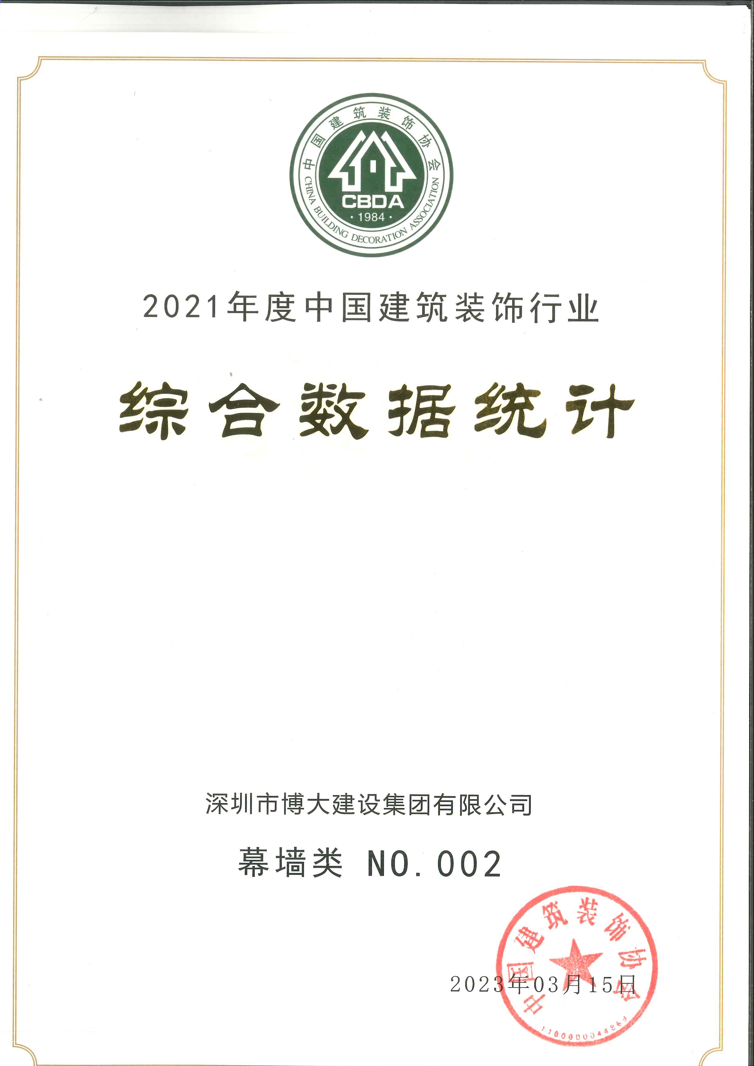 2021年度中國建筑裝飾行業百強幕墻類第二名