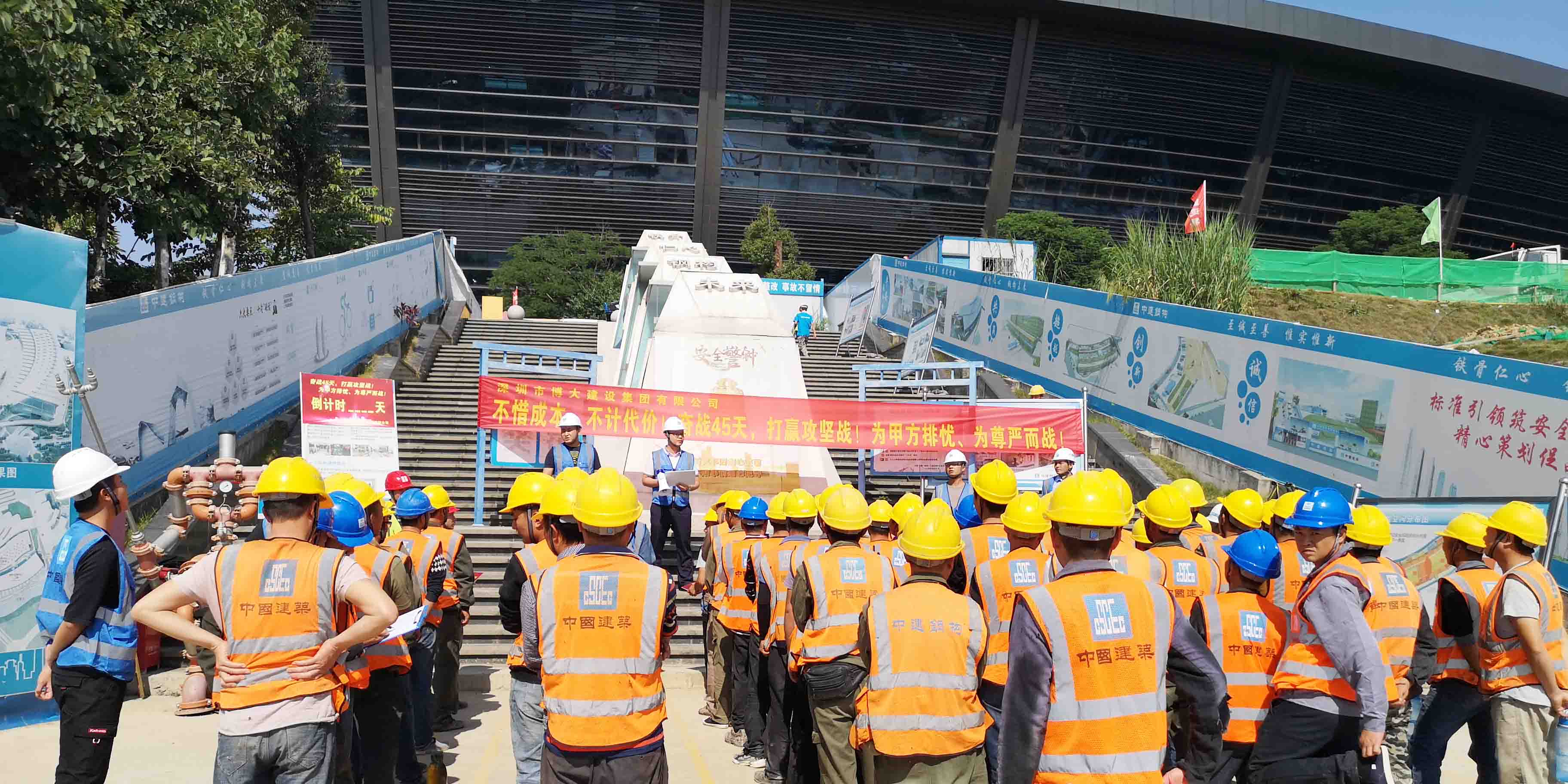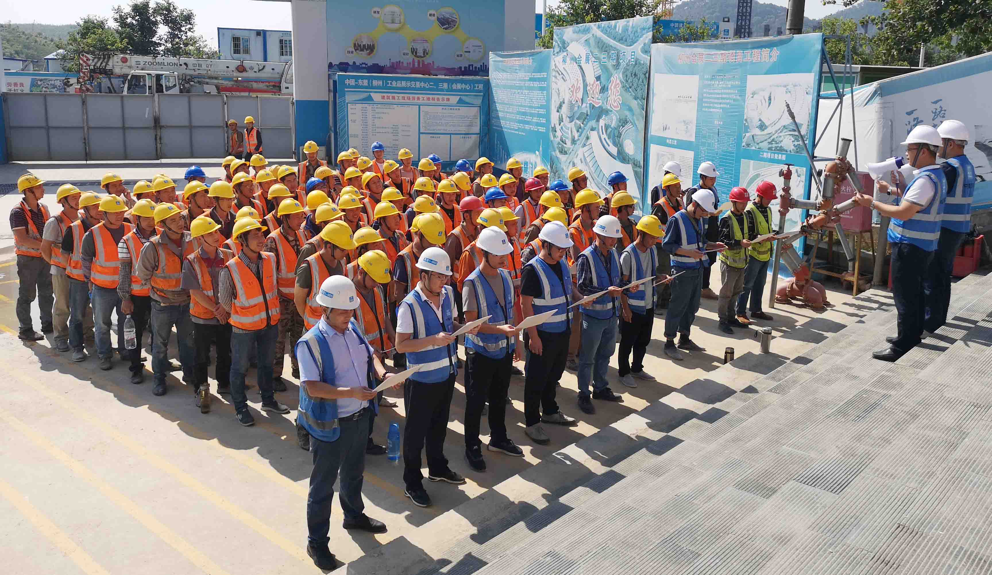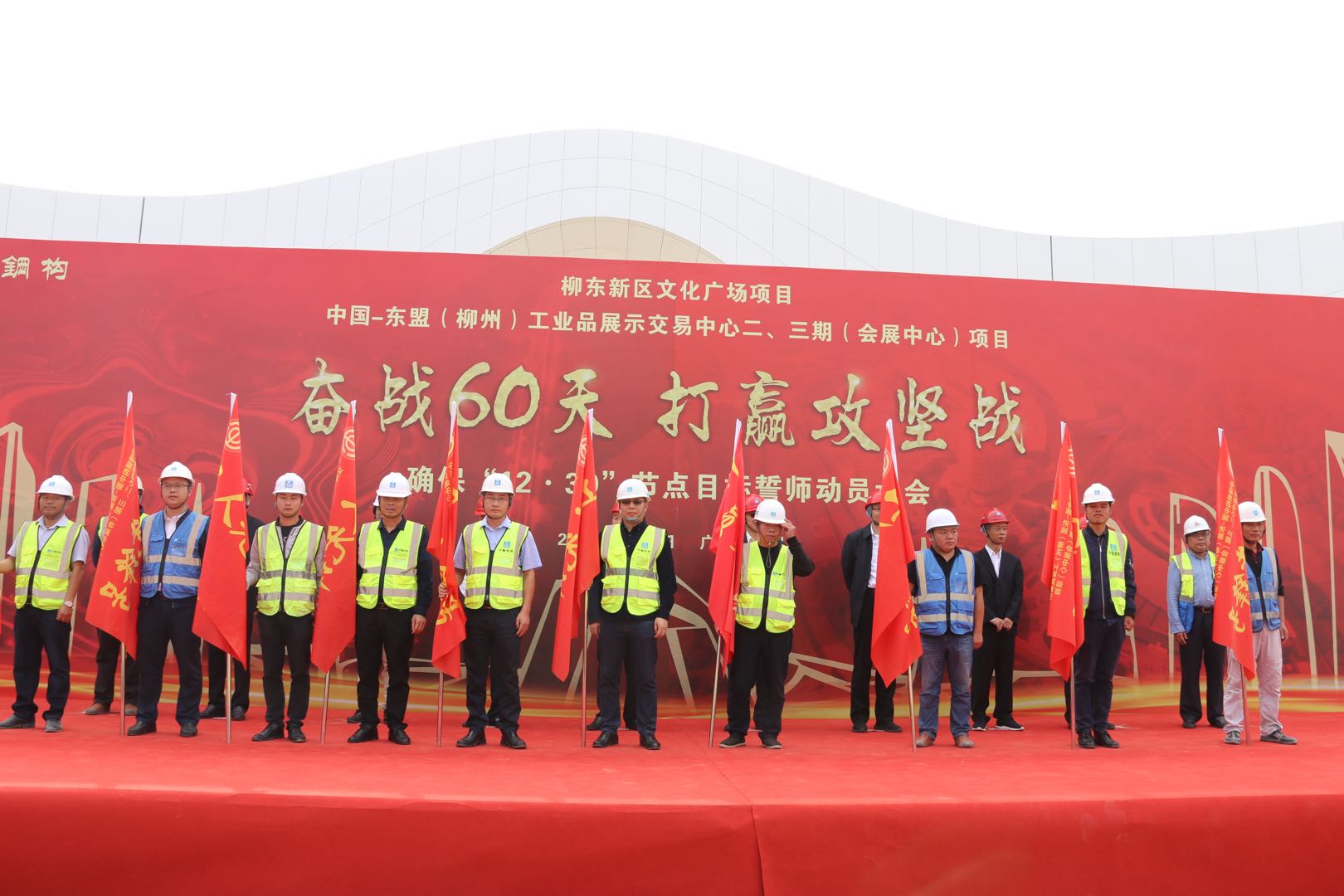 奮戰(zhàn)45天,博大鐵軍誓言打贏柳州會(huì)展項(xiàng)目攻堅(jiān)戰(zhàn)——中國(guó)-東盟(柳州)工業(yè)品展示交易中心項(xiàng)目部舉行攻堅(jiān)誓師大會(huì)