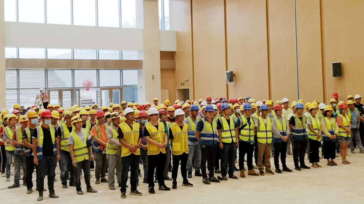 大雪壓青松,青松挺且直。雖然面臨著施工區(qū)域近10萬㎡、多專業(yè)施工交叉作業(yè)、工期緊、魯班獎(jiǎng)質(zhì)量標(biāo)準(zhǔn)要求、洪澇災(zāi)害影響材料進(jìn)場等重重困難,博大鐵軍不畏艱險(xiǎn)、迎難而上,舉行誓師大會(huì),統(tǒng)一思想、傳遞信心、堅(jiān)定信念,將履約視為生命,向甲方莊重承諾。