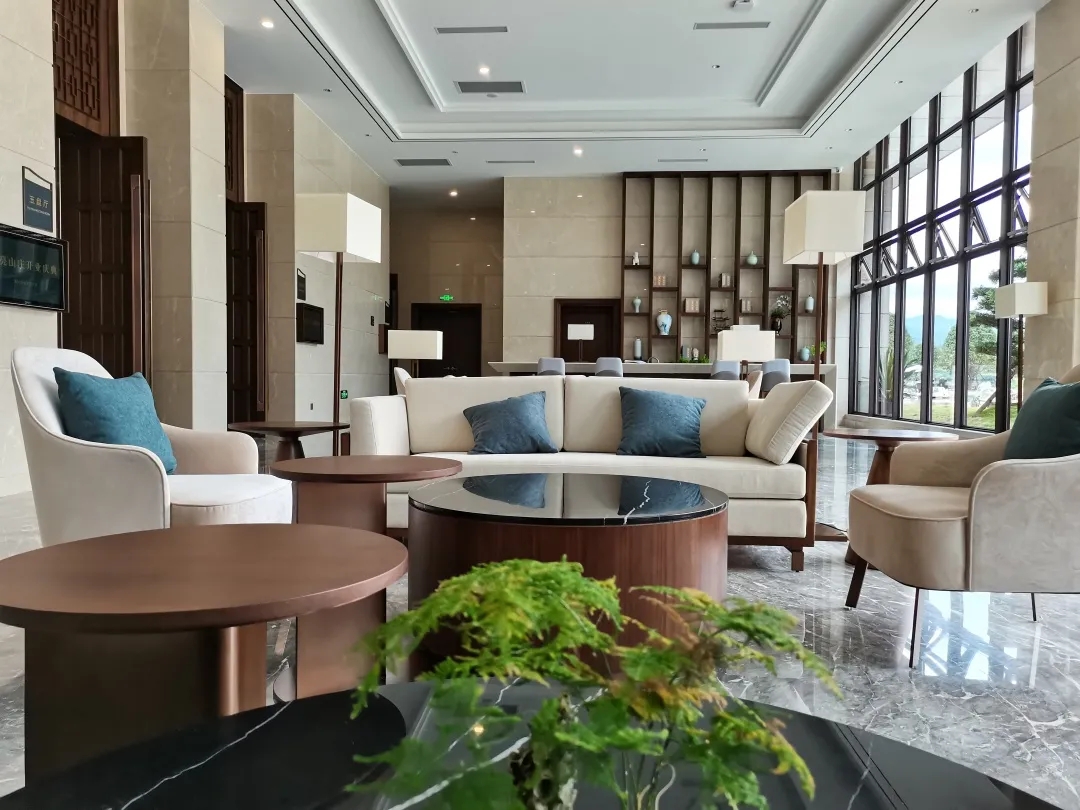 獨具民族特色的建筑風格、高雅的中式大堂、濃郁的中國山水氛圍,亭臺水榭,溪流潺潺,讓顧客產生“店在景中,人在畫中”的效果。漫步在這座五星級酒店內,更能感受到博大鐵軍的“匠心”。